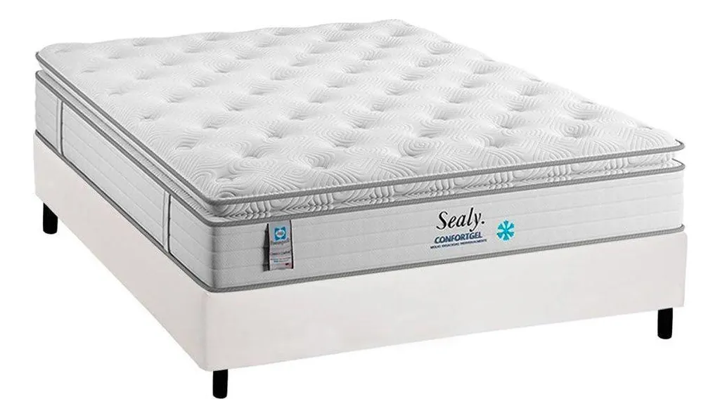 da Plumatex é um box com colchão de molas ensacadas, que oferece tecnologia de ponta para proporcionar maior conforto e qualidade de sono. A camada de gel presente no colchão ajuda a regular a temperatura corporal, garantindo noites de sono mais frescas.